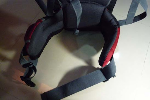 從側面可以看到有一大堆的調整背帶,就是可以根據小朋友跟大人體型,調整到適合的位置,這樣小朋友坐的舒服,大人背的也舒服。