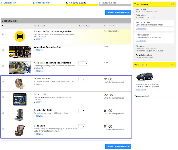 選定你要定的車輛之後,就會進到下一步 'Choose Extras’,也就是開始選配備,基本上就是除了第一項是預設已經選的以外,其他都可以不用選,直接就下一步了。